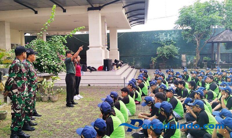 BALI – Denpasar, Dalam rangka memberikan materi tentang Wawasan Kebangsaan dan PBB. Danramil 1611-02/Denpasar Selatan, Mayor Inf I Nyoman Lasiana, bersama anggota Koramil 1611-02/Densel, di Halaman Sekolah SMP Nasional Denpasar, Kecamatan Denpasar Selatan, Kota Denpasar. Kegiatan ini dilaksanakan dalam rangka Masa Pengenalan Lingkungan Sekolah (MPLS) kepada siswa dan siswi Sekolah SMP Nasional yang diikuti oleh 200 siswa. Senin, (14/07/2025).