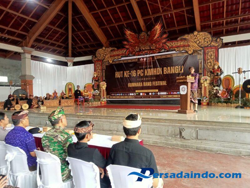 Bangli – Dalam rangka memperingati HUT ke-16 PC Kesatuan Mahasiswa Hindu Dharma Indonesia (KMHDI) Bangli, Babinsa Kelurahan Kawan, Sertu Wayan Budiarta, bersama Danramil 1626-01/Bangli, Kapten Cpl I Wayan Widana, menghadiri Pembukaan Kumhara Bang Festival yang digelar di Balai Banjar Adat Blungbang, Kelurahan Kawan, Kecamatan Bangli. Sabtu (29/8/2025).