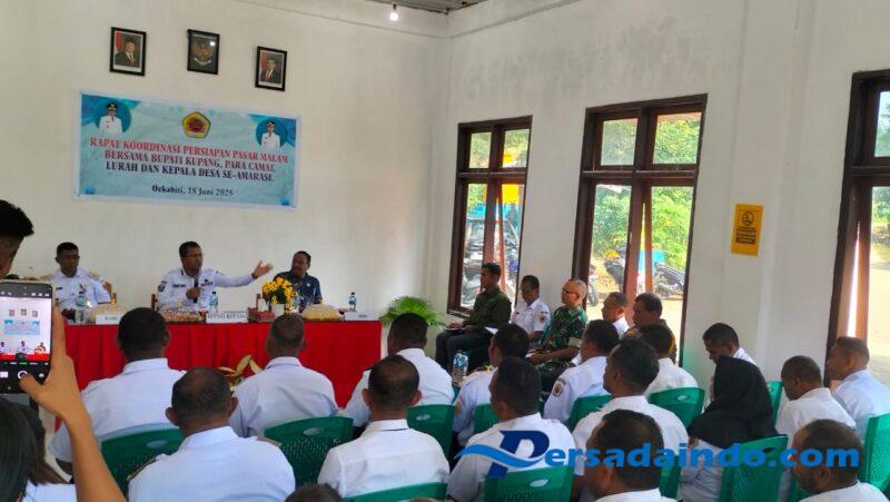 NTT-KUPANG- Danramil 1604-04/Amarasi Kapten Inf I Ketut Sabda Andika bersama para Babinsa Kecamatan Amarasi menghadiri Rapat Koordinasi persiapan pelaksanaan Pasar Malam yang direncanakan akan digelar di lapangan upacara Kecamatan Amarasi. Kegiatan tersebut berlangsung di Aula Kantor Kecamatan Amarasi, Kabupaten Kupang, dan dipimpin langsung oleh Bupati Kupang, Yosef Lede, S.H. Kamis (19/06/2025).