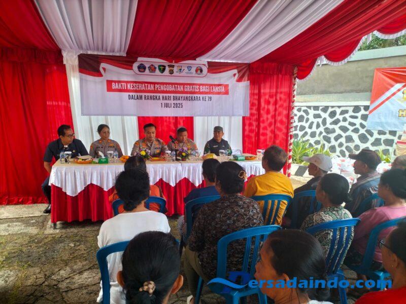 Rangkaian acara dimulai dengan kegiatan bakti kesehatan. Dalam sambutannya, Kapolres Buleleng AKBP Ida Bagus Widwan Sutadi menyampaikan rasa syukur dan menekankan bahwa bakti kesehatan ini bertujuan memberikan pelayanan terbaik kepada masyarakat, karena Polri hadir untuk masyarakat. Beliau juga menyampaikan terima kasih kepada seluruh warga yang hadir, dengan harapan kegiatan ini bermanfaat bagi masyarakat lansia di Kecamatan Busungbiu.