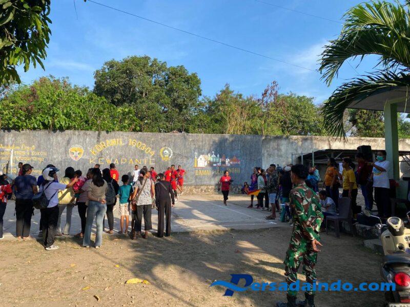 NTT-SIKKA. Anggota Koramil 1603-04/Kewapante Kodim 1603/Sikka, melaksanakan pengamanan kegiatan perlombaan bola voli antar puskesmas yang berlangsung di Lapangan Koramil Kewapante dalam rangka memperingati Hari Kesehatan Nasional (HKN), Sabtu(1/11/2025).