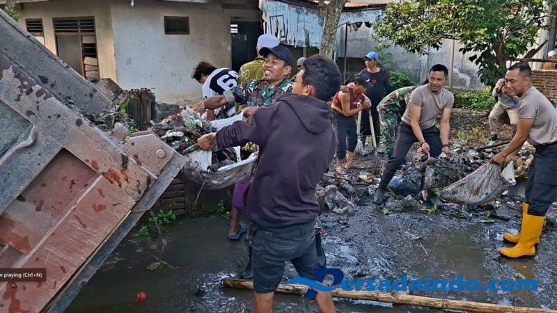 Dengan semangat gotong royong, anggota Koramil bersama Polsek Pringgarata dan warga setempat membersihkan endapan lumpur, mengangkat sampah, membersihkan gorong gorong dari sumbatan tanah dan sampah agar aliran air kembali normal.