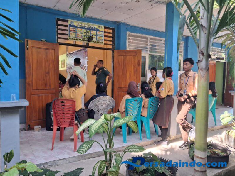 NTT – Sumba Timur, Komandan Koramil 1601-05/Waingapu Kapten Inf Samsiadi, didampingi Babinsa memberikan materi dengan tema bela negara dalam kegiatan Masa Pengenalan Lingkungan Sekolah (MPLS) di SMK Negeri 1 Waingapu, Jalan Jend Soeharto, Kelurahan Matawai, Kecamatan Kota Waingapu, Kabupaten Sumba Timur, Rabu (16/07/2025).