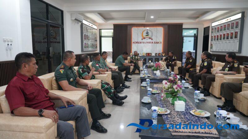 Komandan Korem 161/Wira Sakti Brigjen TNI Joao Xavier Barreto Nunes, S.E., M.M, menerima kunjungan audiensi dari Sekretaris Jaksa Agung Muda Pidana Militer (Sesjampidmil) Kejaksaan Agung RI Dr. I Made Suarnawan didampingi oleh Wakajati NTT Prihatin, S.H beserta rombongan, bertempat di Ruang Loby Makorem 161/Wira Sakti JL. W.Z Lala Mentik Oebufu Kota Kupang, Kamis (24/07/2025).