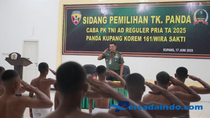 Komandan Korem 161/Wira Sakti Brigjen TNI Joao Xavier Barreto Nunes, S.E., M.M memimpin langsung Sidang Parade Calon Bintara Prajurit Karier (PK) TNI Angkatan Darat (AD) Reguler Pria Tahun Anggaran 2025. Sidang berlangsung di Aula Sudirman Makorem 161/Wira Sakti JL. W.Z Lalamentik Oebufu Kota Kupang, Selasa (17/06/2025)