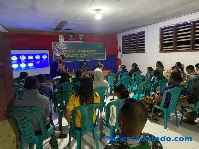 Ngada-Benteng Tawa, Kamis (30/10/2025) — Program TNI Manunggal Membangun Desa (TMMD) ke-126 Kodim 1625/Ngada di bawah pimpinan Dansatgas Letkol Inf Imam Subekti tidak hanya berfokus pada pembangunan infrastruktur, tetapi juga pada peningkatan kesejahteraan masyarakat melalui kegiatan nonfisik. Salah satunya adalah penyuluhan kesehatan yang dilaksanakan di Aula Kantor Desa Benteng Tawa, Kecamatan Riung Barat, Kabupaten Ngada.