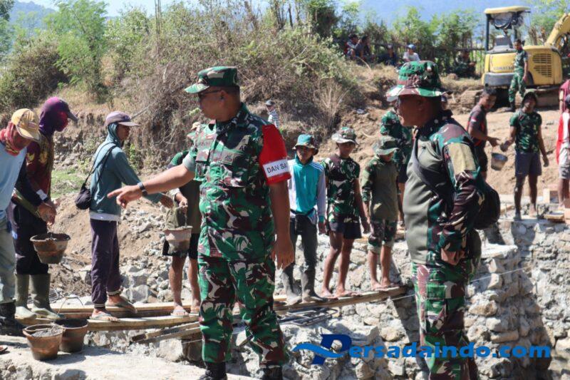 Dalam kunjungannya, Dansatgas didampingi oleh sejumlah perwira staf dan Danramil setempat. Ia menyusuri beberapa titik sasaran fisik yang tengah dikerjakan, di antaranya pembangunan jembatan limpas, pembuatan saluran irigasi, sumur bor, jalan usaha tani serta progres pembangunan Rumah Tidak Layak Huni (RTLH).