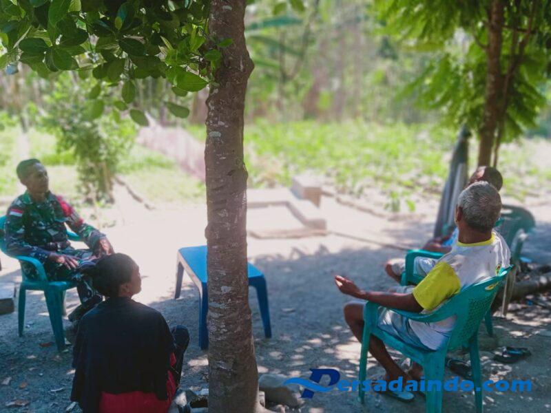 Serka Carlos Cardoso melaksanakan kegiatan komunikasi sosial (komsos) bersama keluarga Bapak Yohanes Haki di Dusun 2 Nakol, RT.021/RW.001, Desa Maubesi, Kecamatan Insana, Kabupaten Timor Tengah Utara (TTU).
