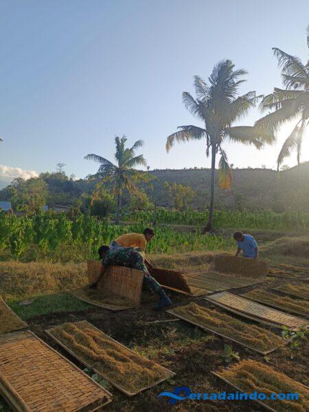 Selain berdialog dan menyerap aspirasi warga binaan, Sertu Firmansyah juga secara langsung turun membantu petani dalam proses penjemuran tembakau. Kehadiran Babinsa di tengah aktivitas pertanian warga ini disambut positif dan memberikan semangat tersendiri bagi para petani yang tengah bekerja.