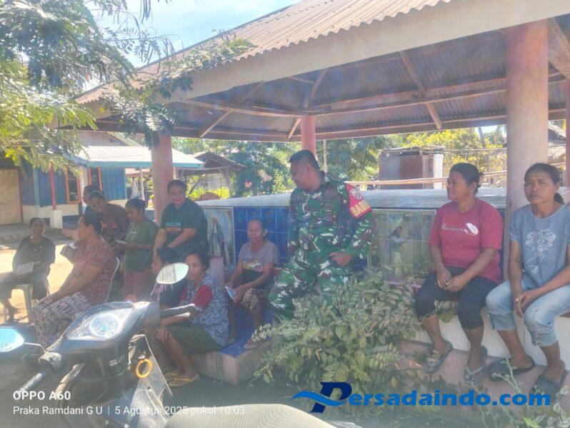 Ende, Dalam rangka memperkuat kemanunggalan TNI dan rakyat serta menjaga keamanan wilayah binaan, Babinsa Koramil 1602-04/Maurole, Praka Ramdani G. Utomo, melaksanakan kegiatan Komunikasi Sosial (Komsos) dan Pengamanan Wilayah (Pamwil) di Desa Otogedu, Kecamatan Maurole, Kabupaten Ende, Selasa pagi (5/8/2025).