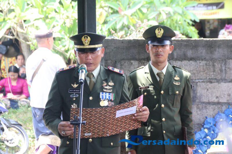 Dalam sambutannya Inspektur Upacara Kapten Ketut Joni menyampaikan bela sungkawa yang sedalam-dalamnya dengan memanjatkan do’a, semoga Ida Sang Hyang Widhi Wasa memberikan tempat yang layak di sisinya sesuai amal bhaktinya dan keluarga yang ditinggalkan diberikan ketabahan, bimbingan serta perlindungan-nya.