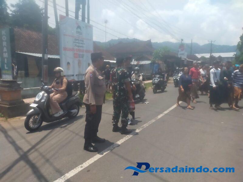 Klungkung,- Ditengah terik panas mentari, Babinsa Dawan Kelod Koptu Nyoman Suartawan bersama Bhabinkamtibmas dan pecalang tampak begitu sigap melaksanakan pengawalan dan pengamanan pemakaman warga di Desa Dawan Kelod, Kecamatan Dawan, Kabupaten Klungkung, Kamis ( 23/10/25 ).
