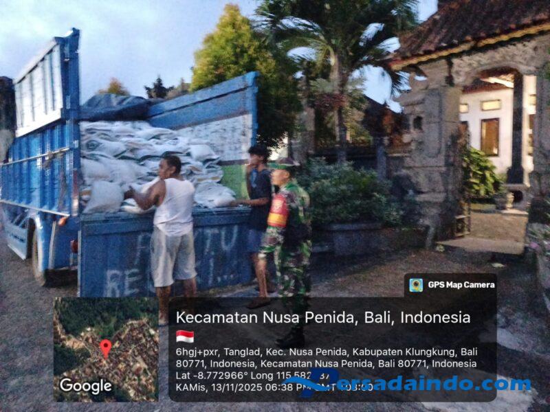 Klungkung,- Sebagai bentuk nyata dukungan TNI dalam mensukseskan Program bantuan pangan (PBP) Beras periode bulan Oktober dan November tahun 2025, Babinsa jajaran Koramil 1610-04/Nusa Penida melaksanakan pengawalan pendorongan PBP menuju Kantor Desa.
