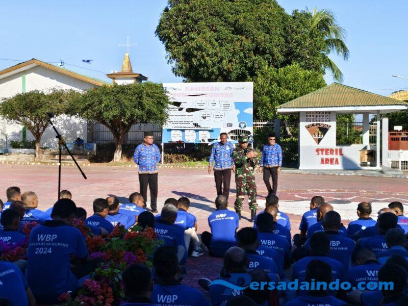 NTT-KUPANG, – Dalam rangka memperkuat karakter dan jiwa nasionalisme para warga binaan, Pasi Terdim 1604/Kupang Mayor Inf Sudirman memberikan materi Wawasan Kebangsaan di Lembaga Pemasyarakatan (Lapas) Kelas IIA Kupang. Kegiatan ini diikuti oleh 460 warga binaan serta seluruh petugas Lapas dengan antusiasme tinggi. Kamis (17/07/2025).