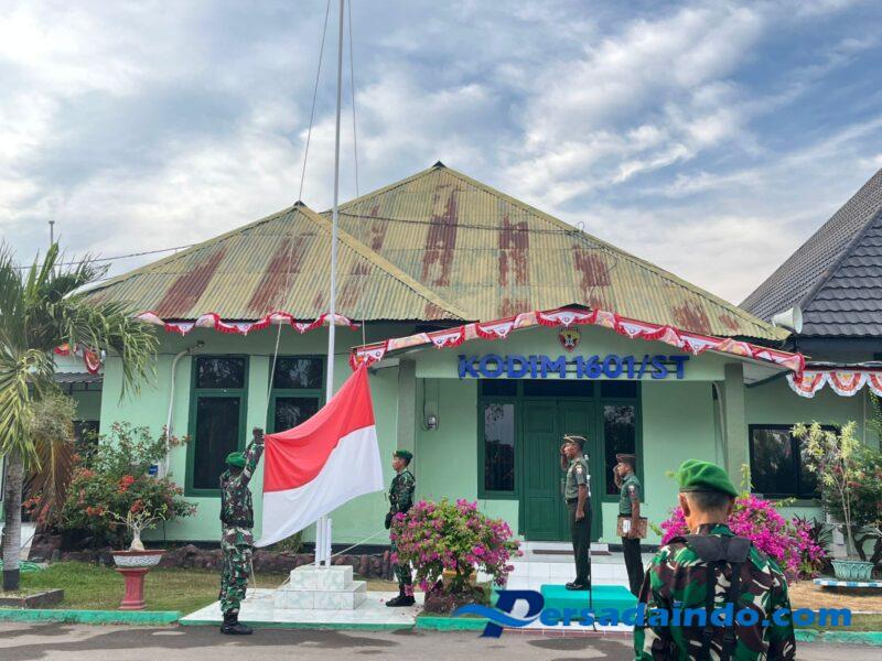 NTT – Sumba Timur. Kepala Staf Kodim 1601/Sumba Timur, Mayor Inf Sambudi, memimpin pelaksanaan upacara bendera yang rutin digelar setiap hari Senin di Makodim 1601/Sumba Timur, Jalan Ir Sukarno No 11, Kecamatan Kota Waingapu, Kabupaten Sumba Timur, Senin (25/08/2025).