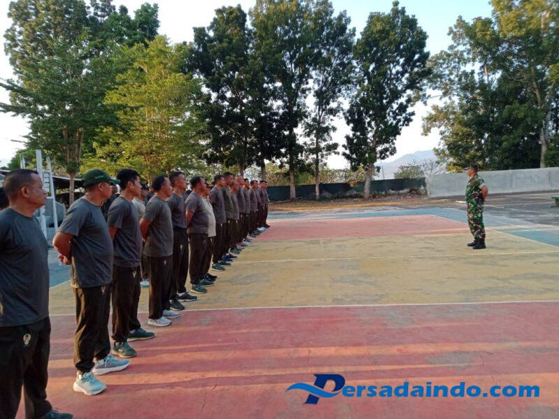 Setelah sesi apel dan pengarahan, kegiatan dilanjutkan dengan sesi pemanasan dan peregangan yang dipimpin oleh Pasi Operasi (Pasi Ops) Kodim 1614/Dompu, Letda Inf Ilham. Seluruh peserta kemudian melaksanakan lari pagi mengelilingi lingkungan Makodim sebagai bagian dari program pembinaan fisik dan peningkatan kebugaran prajurit.
