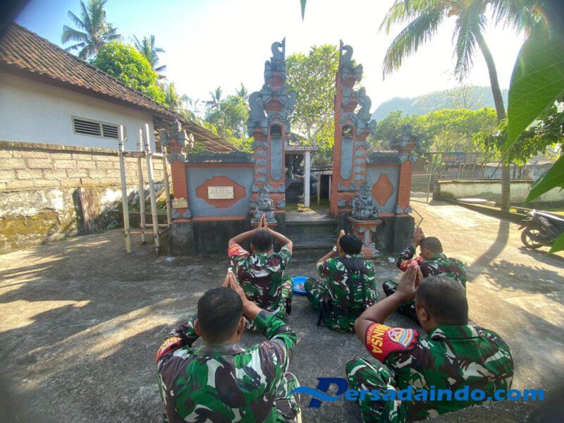 Kegiatan Doa bersama yang di gelar di Pura Makodim 1623/Karangasem dipimpin langsung oleh Jero Mangku Wayan Sudana dan diikuti seluruh anggota militer dan PNS Kodim 1623/Karangasem.