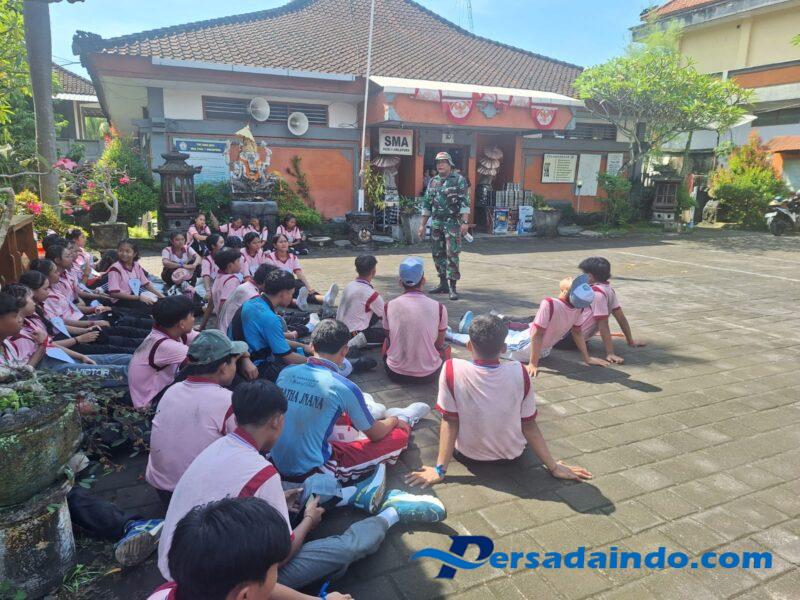 KARANGASEM – Dua orang Prajurit Kodim 1623/Karangasem dipimpin Serma Ida Bagus Putu Erlin Erdiana memberikan pelatihan Peraturan Baris Berbaris (PBB) kepada calon OSIS SMA PGRI 1 Amlapura bertempat di SMA PGRI I Amlapura Jl. PB Sudirman, Kec/Kab.Karangasem pada Jumat (24/10/25)
