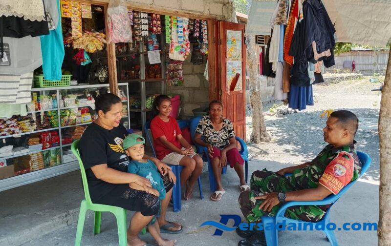 NTT-Kefamenanu., Kamis 23 Oktober 2025, Dalam rangka mempererat hubungan silaturahmi dan memperkuat kemanunggalan TNI dengan rakyat, Babinsa Desa Oepuah Sertu Patricio Maupelun dari Koramil 1618-06/Bian melaksanakan komunikasi sosial (komsos) bersama para ibu-ibu warga binaan di Desa Oepuah, Kecamatan Biboki Moenleu, Kabupaten Timor Tengah Utara (TTU)., Kegiatan ini berlangsung sederhana namun penuh makna, diwarnai suasana akrab dan kekeluargaan.