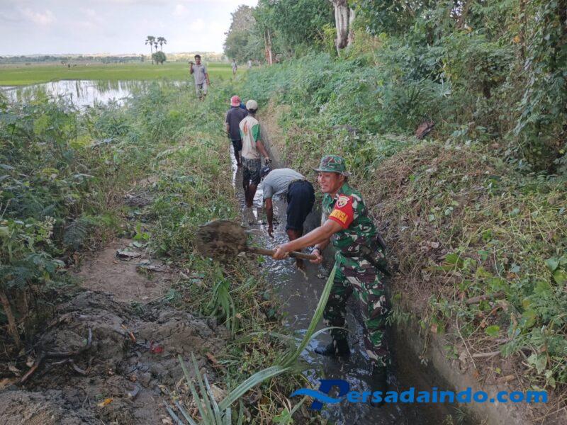 Pada kegiatan kerja bakti tersebut, Babinsa bersama warga saling bahu membahu untuk membersihkan saluran irigasi dari tumpukan pasir dan sampah yang menyebabkan terhambatnya saluran air menuju sawah warga.