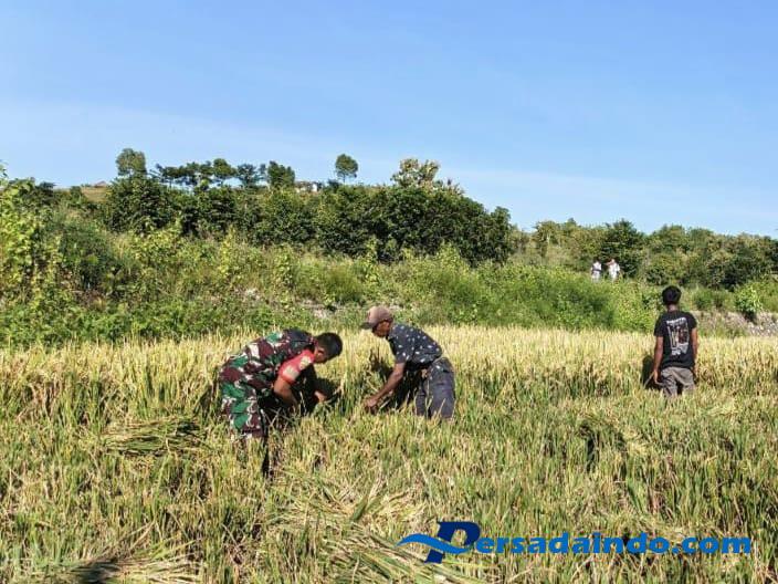 • Dukung Ketahanan Pangan, Babinsa Dampingi Petani Panen