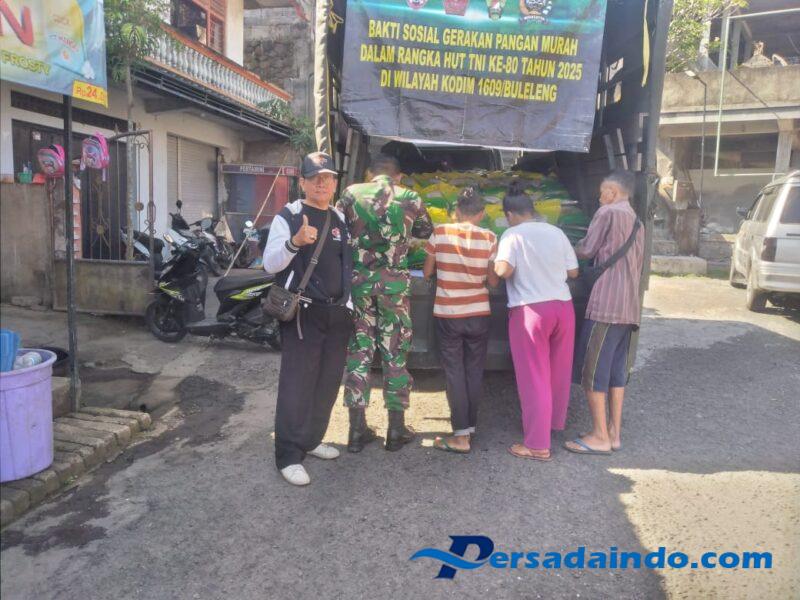Sawan, 3 Oktober 2025 – Babinsa Desa Lemukih, Sertu Adolfo Barreto, melaksanakan pendampingan kegiatan Gerakan Pangan Murah Kodim 1609/Buleleng yang berlangsung pada hari Jumat, pukul 09.20 Wita, bertempat di depan Pura Desa, Desa Lemukih, Kecamatan Sawan, Kabupaten Buleleng.