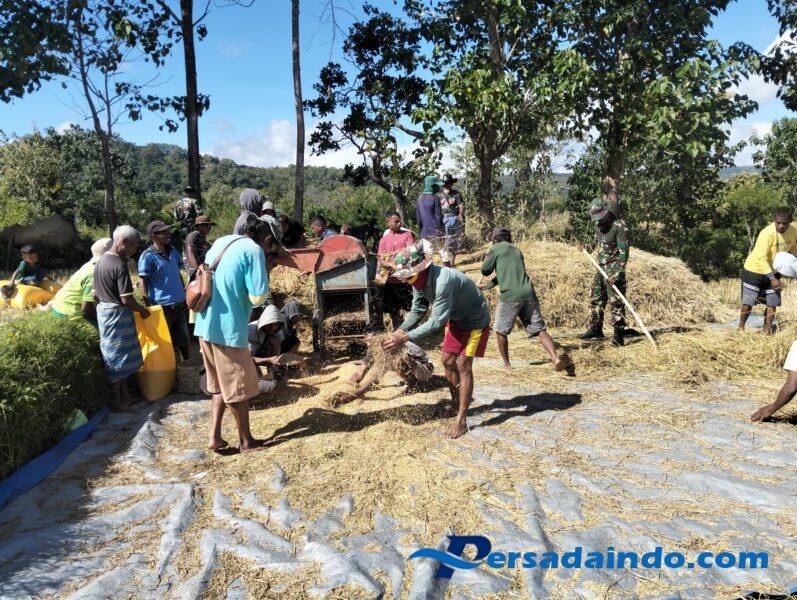 Belu – Pos Lookeu bantu masyarakat laksanakan panen padi bersama masyarakat di Dusun Klauhalek, Desa Lookeu, Kecamatan Tasifeto Barat. Senin (05/05/2025).