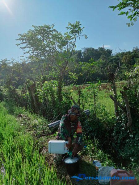 Kegiatan penyemprotan ini bertujuan untuk menjaga kesuburan tanaman padi serta mencegah serangan hama yang dapat mengganggu hasil panen. Kehadiran Babinsa di tengah-tengah petani disambut antusias dan menjadi motivasi tersendiri bagi masyarakat tani setempat.