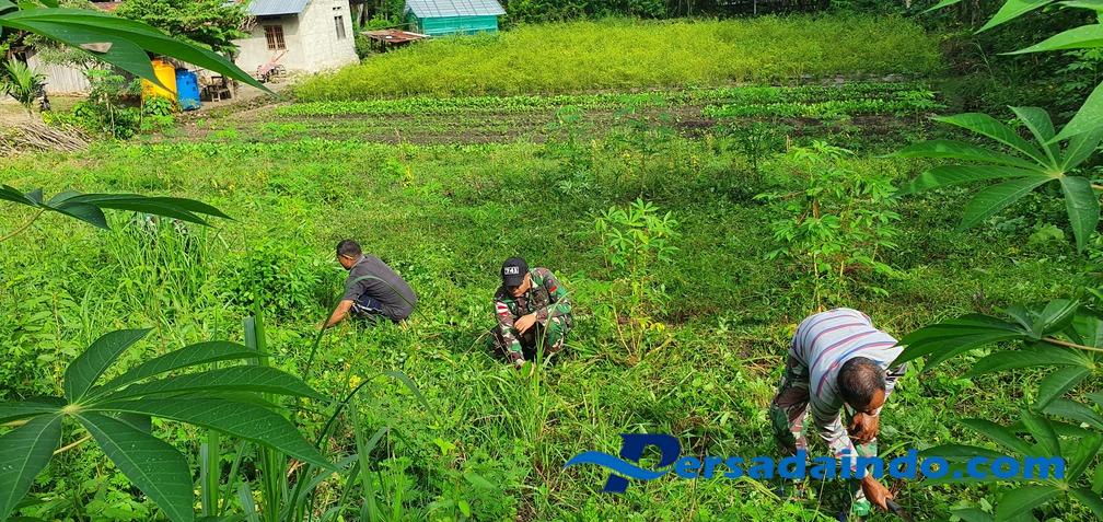Persadaindo.com Belu – Pos Mahen Yonif 741/GN gotong-royong dalam pemanfaatan lahan di daerah binaan di wilayah Desa Baudaok Lasiolat Kabupaten Belu. Rabu (02/04/2025).