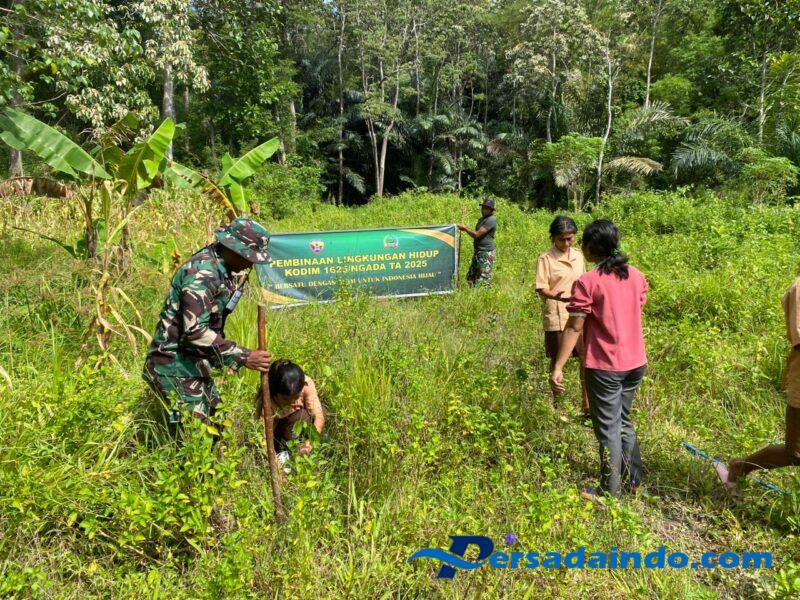 Riung Barat, Kodim 1625/Ngada melaksanakan kegiatan penanaman pohon dalam rangka Giat Pembinaan Lingkungan Hidup bersama para siswa SMAN 2 Riung Barat, Kegiatan ini dilakukan di dua lokasi, yaitu area lingkungan sekolah SMAN 2 Riung Barat serta kawasan reboisasi di Bendungan Panondiwal, Kecamatan Riung Barat, Kabupaten Ngada.