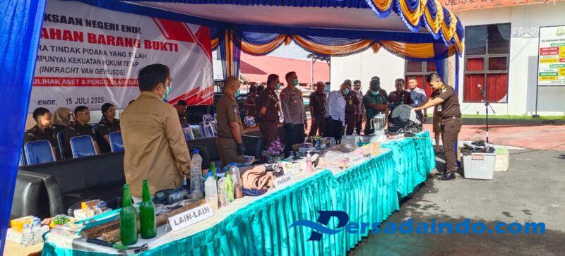 Kegiatan diawali dengan pembukaan oleh MC, doa bersama, sambutan dari Kepala Kejari Ende, dan dilanjutkan dengan proses pemusnahan barang bukti, penandatanganan berita acara, serta sesi foto bersama.