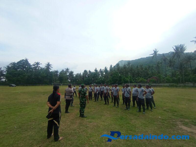Pada kesempatan tersebut anggota Linmas Desa Bugbug menerima materi peraturan baris berbaris dari Babinsa 1623-01/Karangasem Kopka I Gede Mudana.