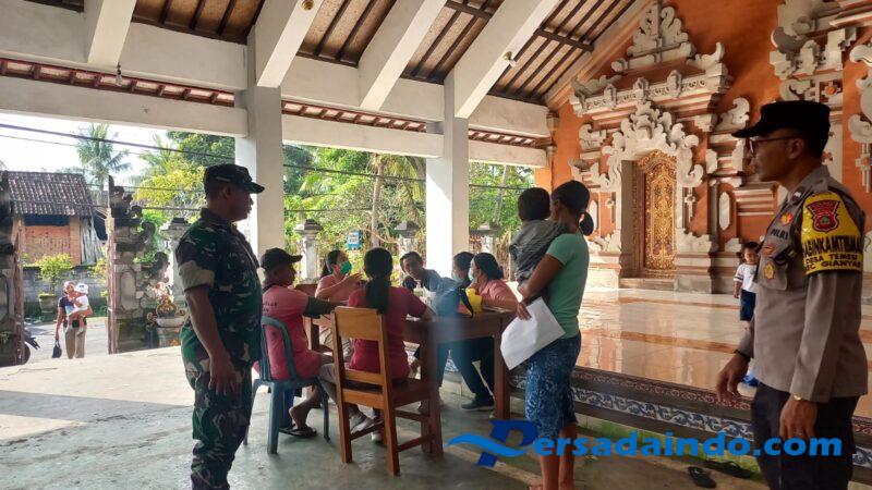 Gianyar – Temesi, Pastikan kegiatan berjalan aman, tertib, dan lancar. Babinsa Desa Temesi Koramil 1616-01/Gianyar, Serka I Dewa Putu Jana bersama Bhabinkamtibmas Desa Temesi, Aipda Ngakan Gede Sukrayana, melaksanakan dampingi kegiatan Posyandu Balita yang dilaksanakan oleh Puskesmas Gianyar I bekerja sama dengan Kader Posyandu Desa Temesi, bertempat di Banjar Temesi, Desa Temesi, Kecamatan Gianyar, Kabupaten Gianyar, pada Sabtu (24/5/2025).
