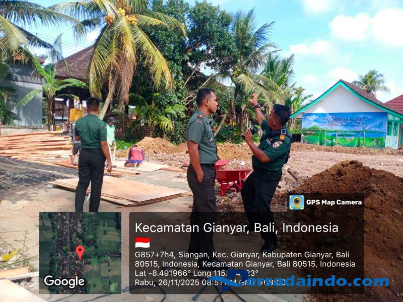 Gianyar – Siangan, Rabu (26/11/2025) Dalam upaya mendukung program nasional, Komandan Kodim 1616/Gianyar Letkol Kav Rizal Wijaya, S.H., M.I.P. kembali menunjukkan komitmennya dengan turun langsung meninjau perkembangan pembangunan Koperasi Desa Merah Putih (KDMP) di sejumlah titik wilayah Gianyar, termasuk di Banjar Purnadesa, Desa Siangan, Kecamatan Gianyar.