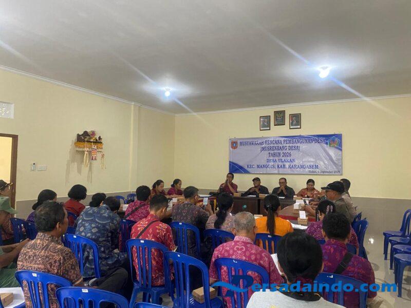 KARANGASEM – Babinsa Desa Ulakan Koramil 1623-05/Manggis Serka I Gede Suardika menghadiri kegiatan rapat Musrenbang Desa dalam rangka penyusunan RKP Desa tahun anggaran 2026 dan DU RKP tahun anggaran 2026, di Aula Kantor Desa Ulakan Kec.Manggis Kab.Karangsem, pada Selasa (09/09/25).