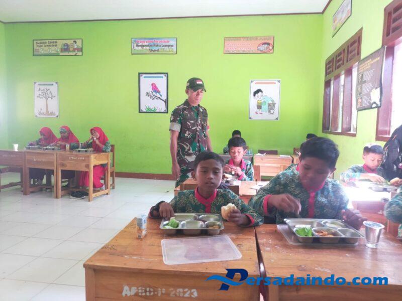 Kegiatan yang dimulai pukul 09.30 Wita ini bertujuan memastikan anak-anak sekolah mendapatkan asupan gizi seimbang untuk mendukung pertumbuhan, kesehatan, dan daya tahan tubuh. Kehadiran Babinsa tidak hanya menjamin kelancaran dan keamanan kegiatan, tetapi juga memberikan motivasi serta pengawasan langsung kepada para siswa.