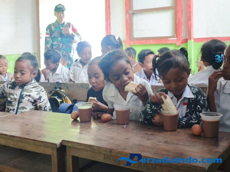 Kegiatan ini merupakan program Satgas Yonif 741/GN selain tugas pokok menjaga keutuhan wilayah NKRI di perbatasan, juga merupakan upaya dalam mendukung program pemerintah dengan memberikan asupan makan bergizi serta bagikan buku kepada siswa/i di sekolah perbatasan RI-RDTL sebagai penambah semangat dalam belajar.