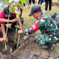 BALI – Denpasar, Babinsa Pemogan, Serka Budi Muhtar, bersama warga melakukan kegiatan gotong royong dan penanaman pohon di bantaran sungai Tam...