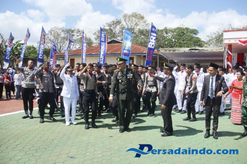 TTS – Dandim 1621/TTS Letkol Inf. Gunawan Budhi Prasetyo, Wakil Bupati Jhony Army Konai Ketua DPRD Mordekai Liu, dan Wakapolres Kompol Ibrahim, Ketua Persit KCK Cab. XX Dim 1621/TTS Ny. Sari Gunawan ikut goyang Jai bersama masyarakat usai upacara HUT RI ke- 80.