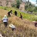 Ende, – Babinsa Koramil 1602-03/Detusoko, Serka Wagimin, bersama PPL Desa Dile, Ibu Mery Queen Shirley, melakukan kegiatan pendampingan panen ...