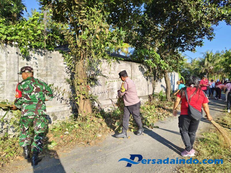 Klungkung,- Menjadi pelopor dalam berbagai kegiatan di wilayah, Babinsa Negari Koramil 1610-02/Banjarangkan Serka Gede Adiasa bersama Bhabinkamtibmas dan Pemdes melaksanakan kegiatan gotong royong, Kamis ( 13/11/25 ).