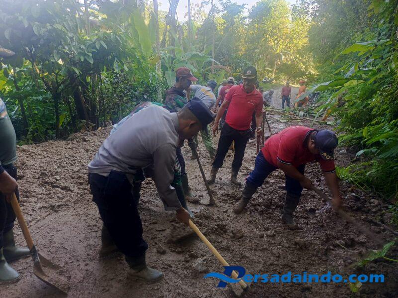 Kegiatan yang dimulai sejak pukul 08.00 Wita ini bertujuan untuk memulihkan kembali akses jalan desa yang tertutup longsoran sepanjang kurang lebih 15 meter, sekaligus menegaskan semangat Kemanunggalan TNI-Rakyat dan sinergi antarlembaga.
