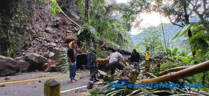 Pratu Muhamad Dhiki menyampaikan akibat Curah hujan yang tinggi yang terus menerus mengguyur wilayah Kab, Ende, mengakibatkan terjadinya longsor yang menutupi badan jalan yang ke 2 kali nya, sehingga kendaraan roda dua maupun roda empat tidak dapat melewati jalan tersebut.