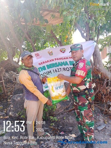 Rote Ndao, 24 Agustus 2025 – Dalam rangka mendukung Gerakan Pangan Murah (GPM), Babinsa Koramil 1627-03/Batutua Serda Hamid Assegaf melaksanakan kegiatan penjualan beras SPHP bertempat di Desa Bo’a, Kecamatan Rote Barat, Kabupaten Rote Ndao, Minggu (24/8).