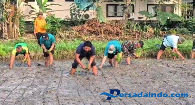 Klungkung,- Dalam rangka ketersedian pangan bagi masyarakat dan peningkatan pendapatan petani, Koramil 1610-03/Dawan berkolaborasi bersama BPP Dawan, PPL, kelompok tani dan Gapoktan wilayah Dawan menggelar kegiatan gerakan tanam padi hibrida, Kamis ( 14/08/25 ).