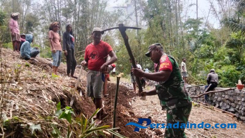 Ngada, Kamis 13 November 2025 — Dalam rangka mempererat kemanunggalan TNI dengan rakyat serta meningkatkan kepedulian terhadap lingkungan, Babinsa Koramil 1625-01/Bajawa, wilayah Kecamatan Soa, Kopda Heronimus T. Rema, melaksanakan karya bakti pembuatan Tembok Penahan Tanah (TPT) di kuburan umum Desa Masumeli, Kecamatan Soa, Kabupaten Ngada.