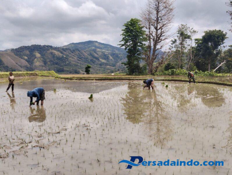 SUMBA BARAT – Babinsa Koramil 02/Walakaka Kodim 1613/Sumba Barat, Sertu Alifin, turut serta membantu warga masyarakat menanam padi di Desa Kabukarudi, Kecamatan Lamboya, Kabupaten Sumba Barat, Kamis (18/9/2025).