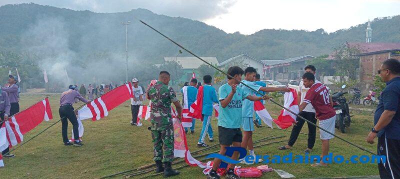 Sumbawa Barat, NTB – Dalam rangka memeriahkan Hari Ulang Tahun (HUT) ke-80 Republik Indonesia, Babinsa Desa Sekongkang Atas, Koptu Sufyan, bersama masyarakat melaksanakan kegiatan gotong royong dan pemasangan umbul-umbul di wilayah Desa Sekongkang Atas, Kecamatan Sekongkang, Kabupaten Sumbawa Barat. Jumat (15/8/2025).