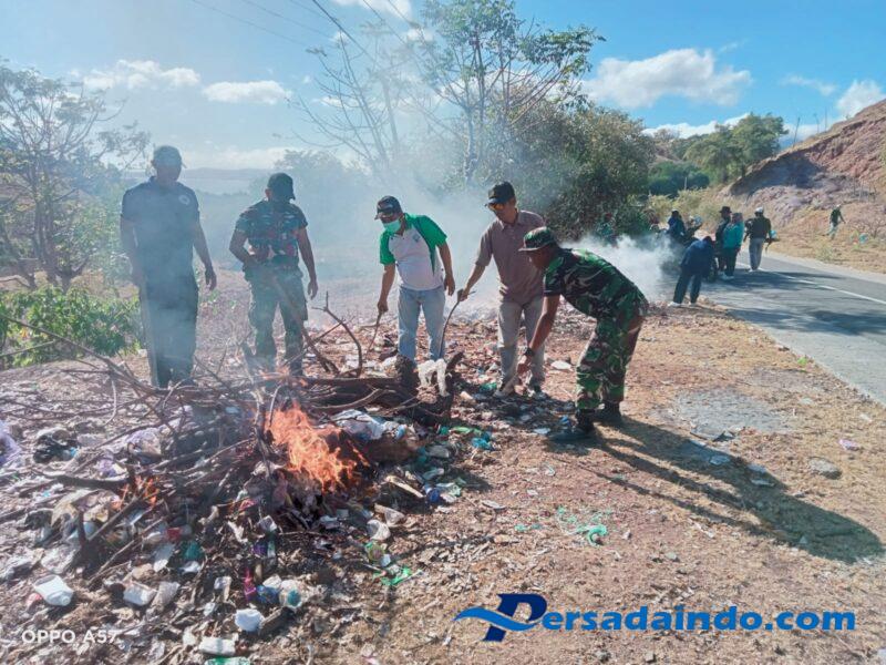 NTT-KUPANG, – Babinsa Oenoni II Koramil 1604-04/Amarasi, Serka Hery Sujibto, bersama masyarakat melaksanakan karya bakti pembersihan bahu jala...
