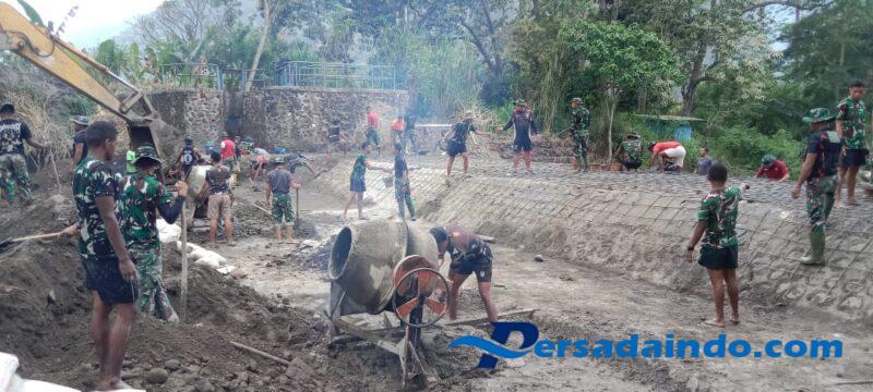 NGADA, NTT — Program TNI Manunggal Membangun Desa (TMMD) ke-126 Kodim 1625/Ngada terus menunjukkan kemajuan signifikan. Memasuki hari ke-11 pelaksanaan, Minggu (19/10/2025), Satgas TMMD bersama masyarakat Desa Benteng Tawa, Kecamatan Riung Barat, Kabupaten Ngada, fokus melanjutkan kegiatan fisik berupa pengecoran lantai Bendungan Panondiwal.